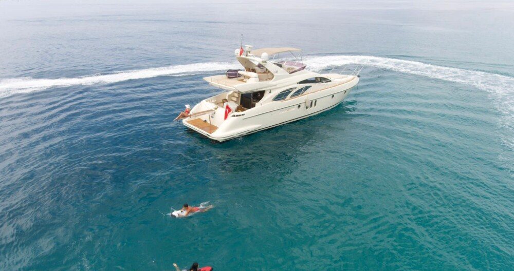 Marka azimut 65 fit 21mt 3 kabin maksimumun kapasite 12-15 kişi kemer marina